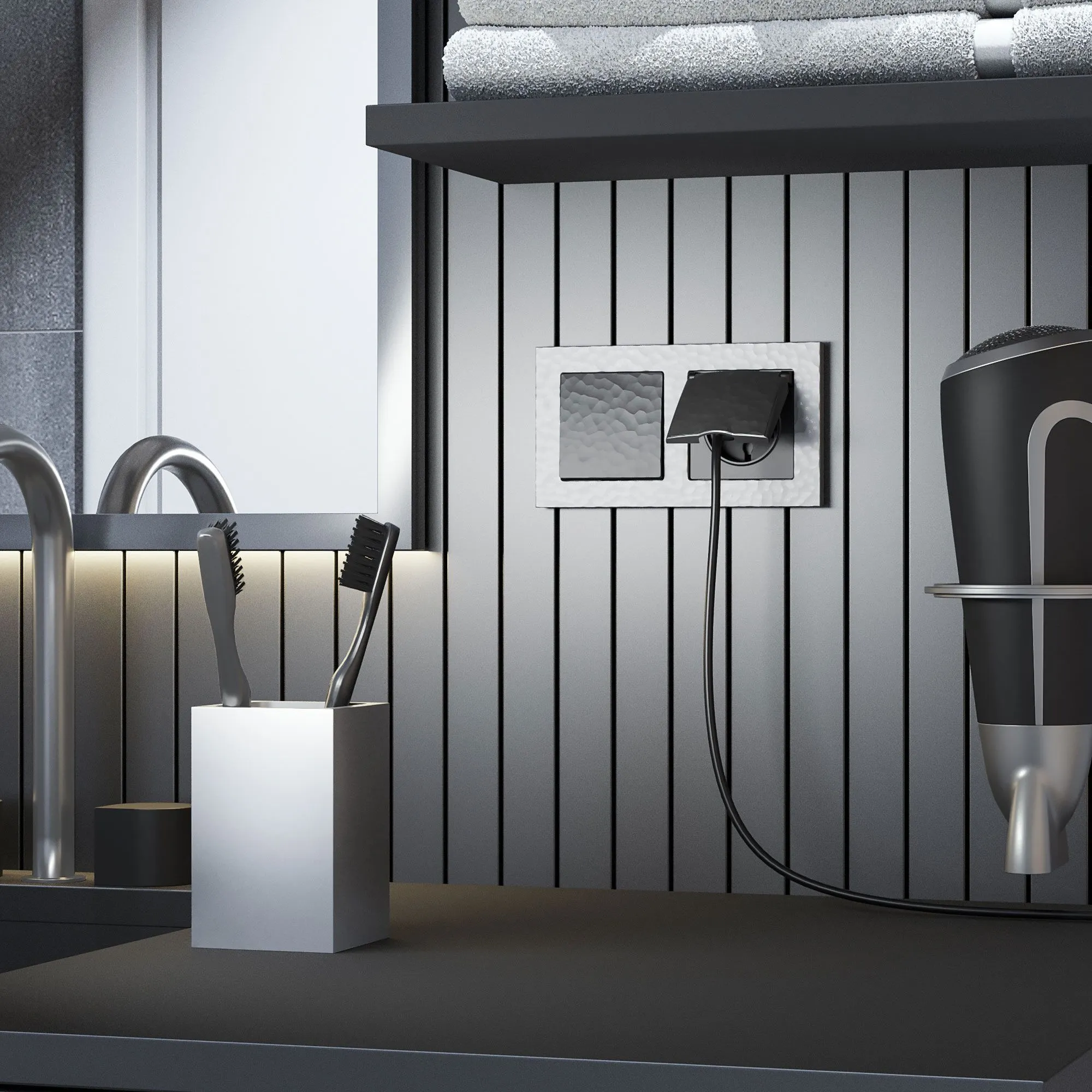 Серия рамок Hammer предлагает возможность комбинирования с различными механизмами Werkel, позволяя воплотить самые смелые дизайнерские идеи.